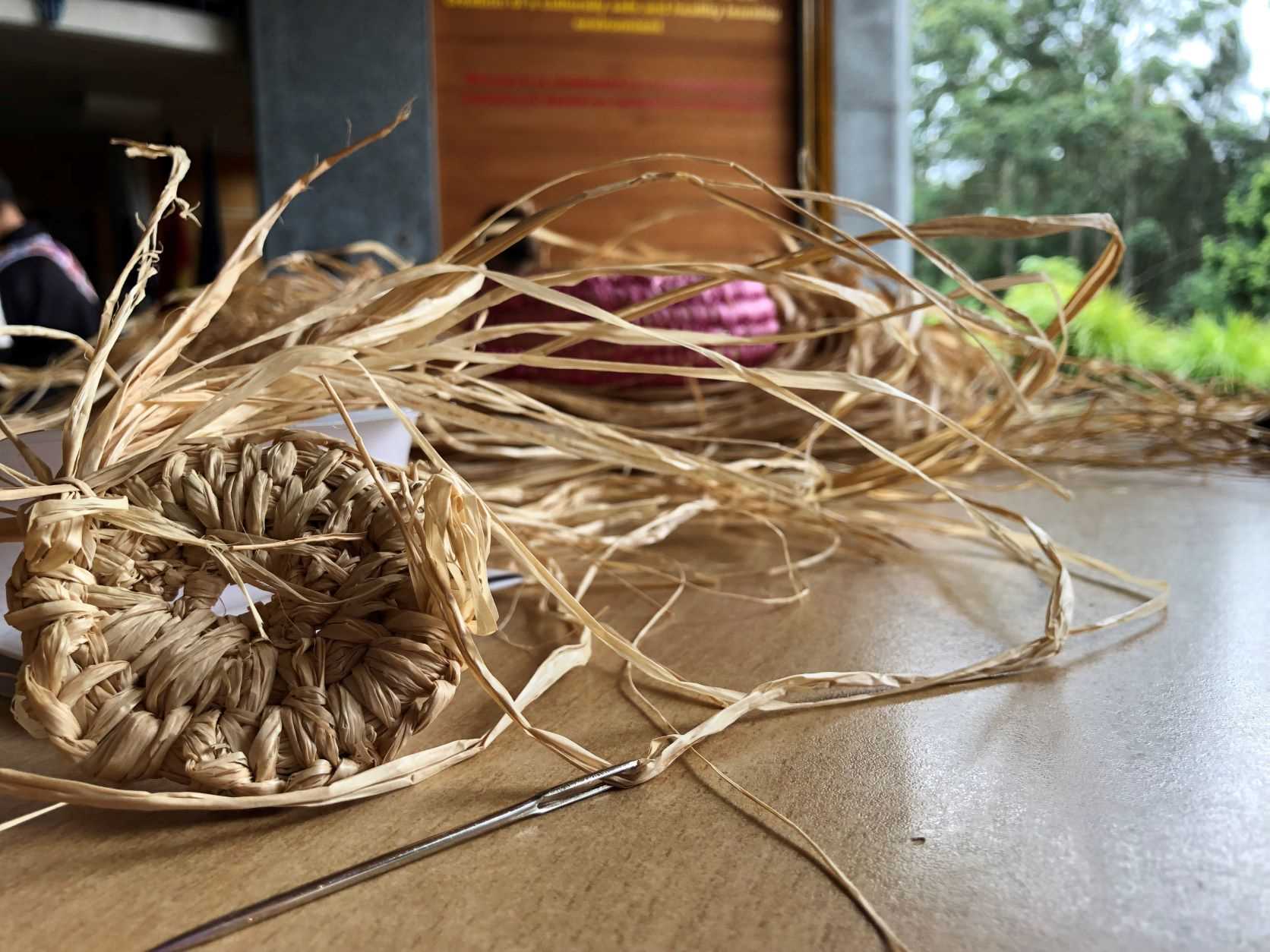 Dr Barker advised participants to start with six pieces of raffia, keep a “tail”, which becomes a seventh, and then make the first knot.