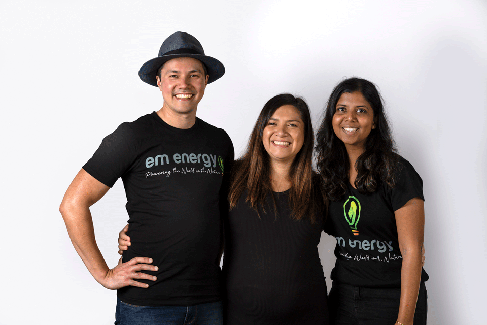 EM Energy team members Chris Wilson, Isabel Toasa and Kesha Manimaran